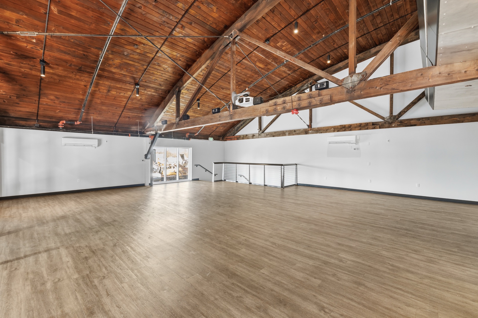A dedicated bar and beverage station keeps the celebration flowing without crowding the main hall. The grounds outside open to mountain views and ample parking.